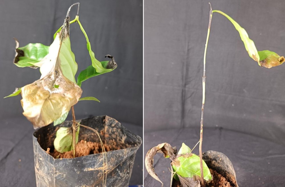 咖啡漆斑病是近年在苗圃咖啡幼苗上發(fā)生的新病害,可引起咖啡幼苗葉片脫落,嚴重時整株枯死。該病在云南咖啡各產(chǎn)區(qū)苗圃均有發(fā)生,發(fā)病率高達40%。高溫高濕有利于該病發(fā)生。目前正值高溫多雨季節(jié),建議各監(jiān)測站加強監(jiān)測,指導咖農(nóng)和種植企業(yè)開展監(jiān)測防控。